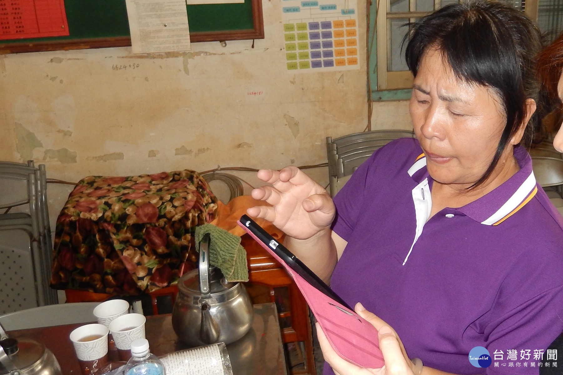 後壁區新嘉社區關懷據點大隊長林香蓮示範「Smart健康APP」。