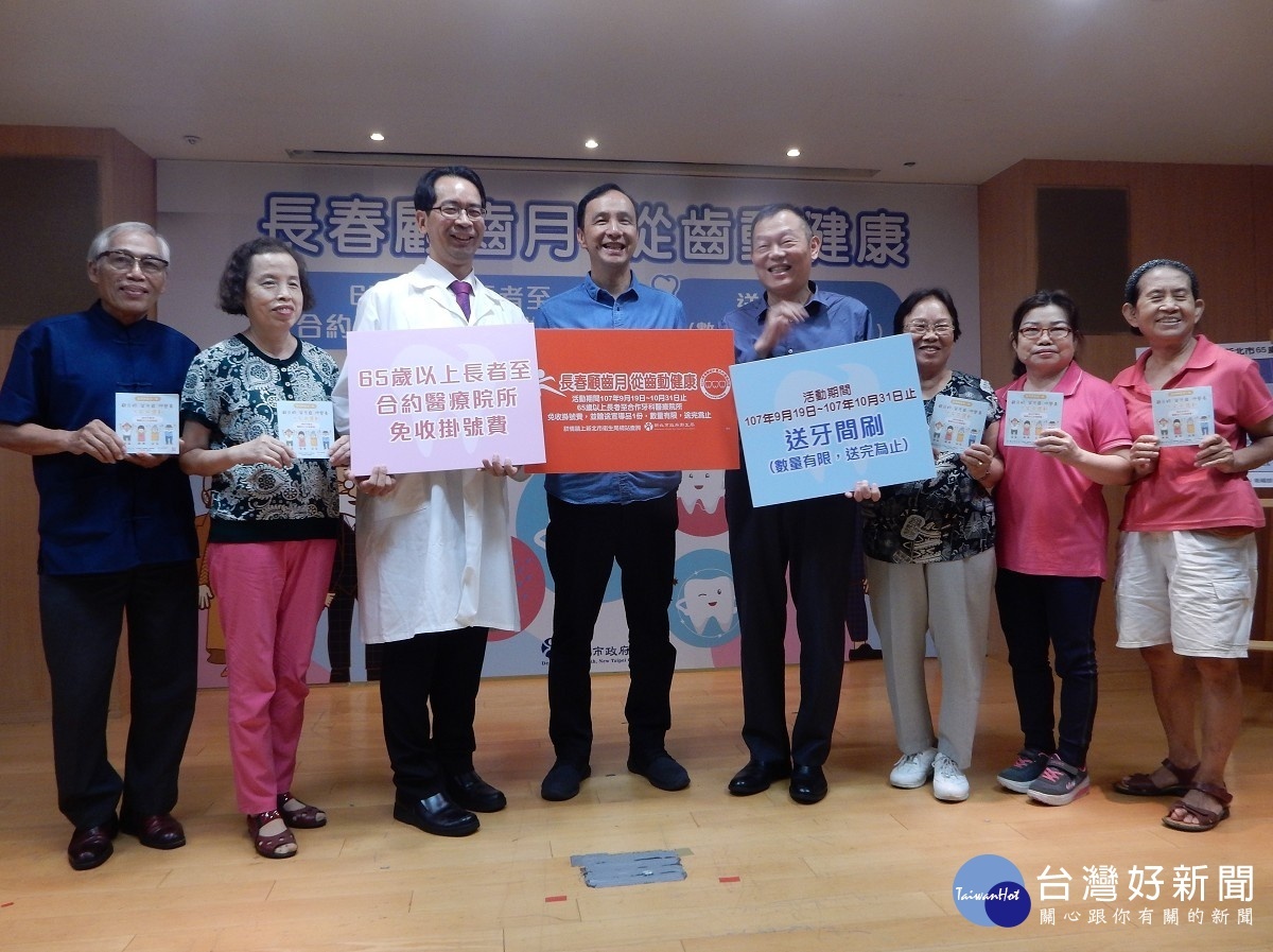 朱立倫市長19日出席「長春顧齒月 從齒動健康」記者會,指新北市長者到合約醫療院所牙科門診免費健檢增加固齒塗氟的項目,主要是希望80歲長輩至少保有20顆正常咀嚼的牙齒,共同守護口腔健康。