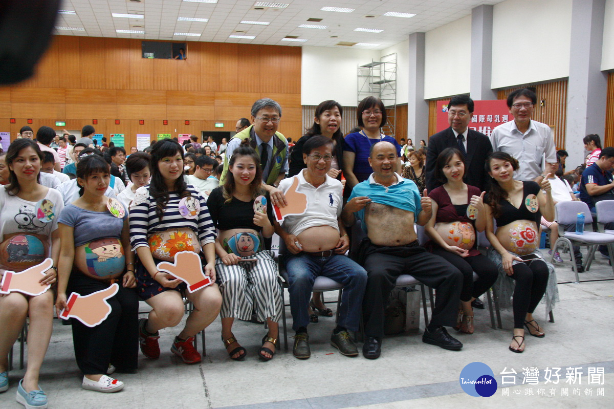 南投縣長林明溱為鼓勵生育推廣母乳,不惜犧牲展示他的鮪魚肚,和彩繪孕媽咪們共同宣示支持母乳哺育,衛生局5日舉辦「支持母乳哺育拒絕菸品危害守護健康衛你著想」活動,吸引千餘親子共同參與,且全國5縣市同步連線,會場上一波接一波精彩活動掀起高潮。