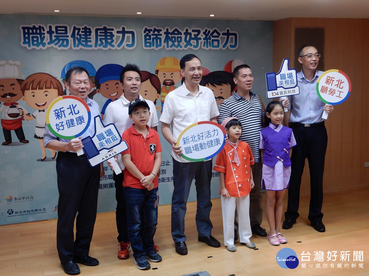 市長朱立倫26日出席記者會,在父親節前夕宣布即日起只要在新北市上班的勞工,不分身份、性別及年齡,只要揪團30名以上,即使是不同公司就可與轄內衛生所預約,衛生所醫護團隊將前往約定的公司位址免費為勞工朋友進行大腸癌及口腔癌篩檢。