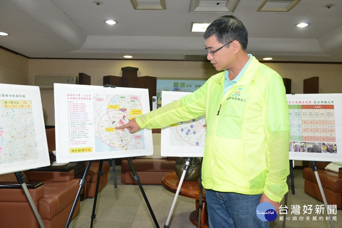 日本腦炎流行季節為每年5至10月,截至目前高雄市日本腦炎確定病例共8例(全國16例),經治療後3例已出院、5例住院治療中。自5月24日林園區出現群聚疫情後,市府防疫團隊已劃定周邊大寮、鳳山、小港、鳥松、大樹為警戒區域,近期大寮及岡山區也陸續出現散發個案,針對個案疑似感染地點周圍市府防疫團隊第一時間立即疫情調查、於疫情發生區2公里內高風險場域佈放捕蚊燈,每日進行病媒蚊誘捕並監測成蚊數量,同時加強附近民眾之教育宣導及適齡豬隻免疫與適齡兒童之疫苗催種工作。