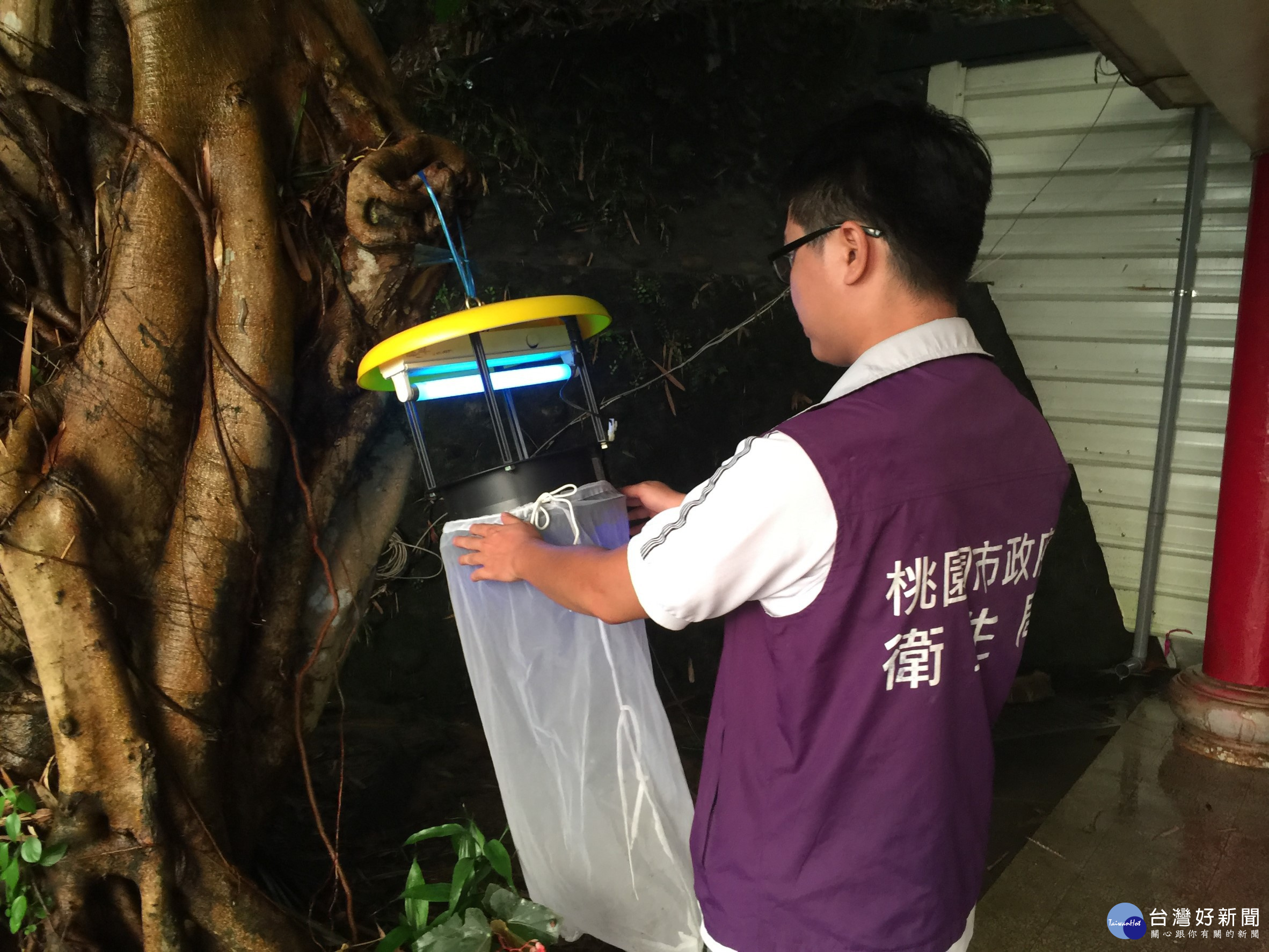 衛生局針對個案住宅附近鴿舍懸掛誘蚊燈,以誘捕病媒蚊,並針對附近居民進行衛教宣導。
