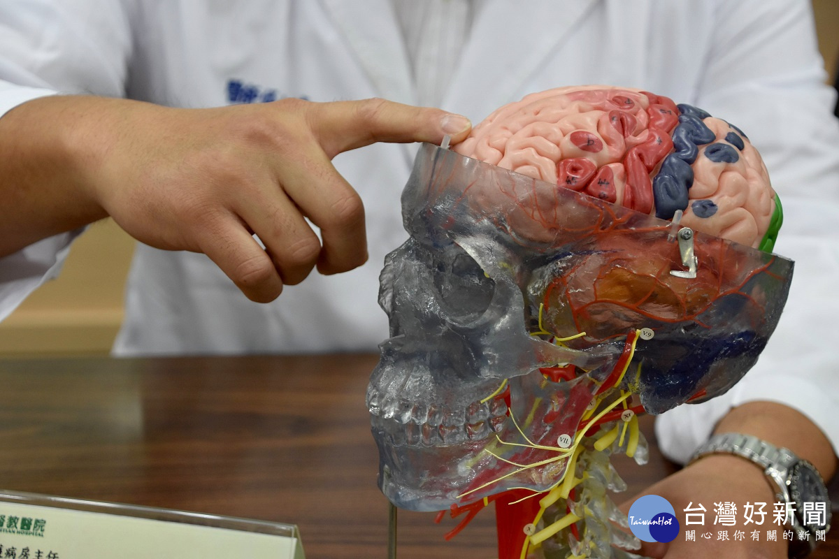 邱駿清醫師手指「NMDA受體腦炎」易發部位。圖/記者鄧富珍攝