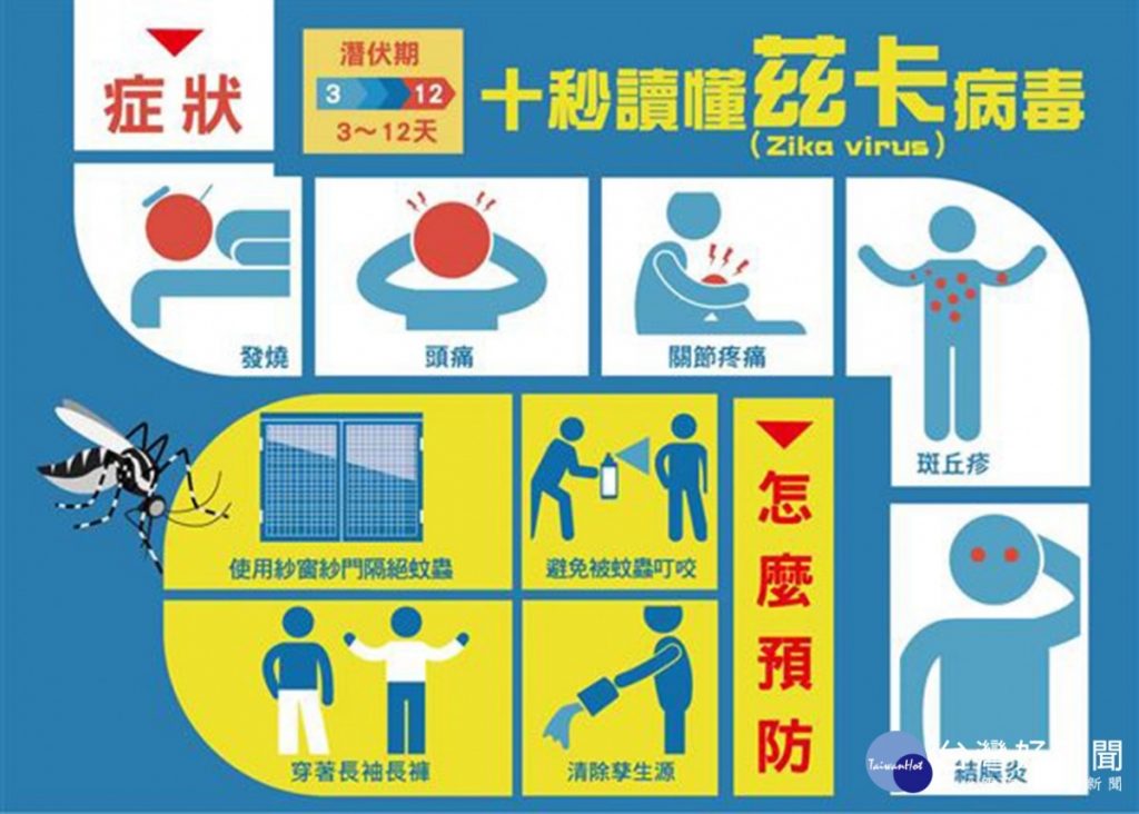 疾管署呼籲,一般成人感染茲卡病毒後症狀輕微,孕婦…
