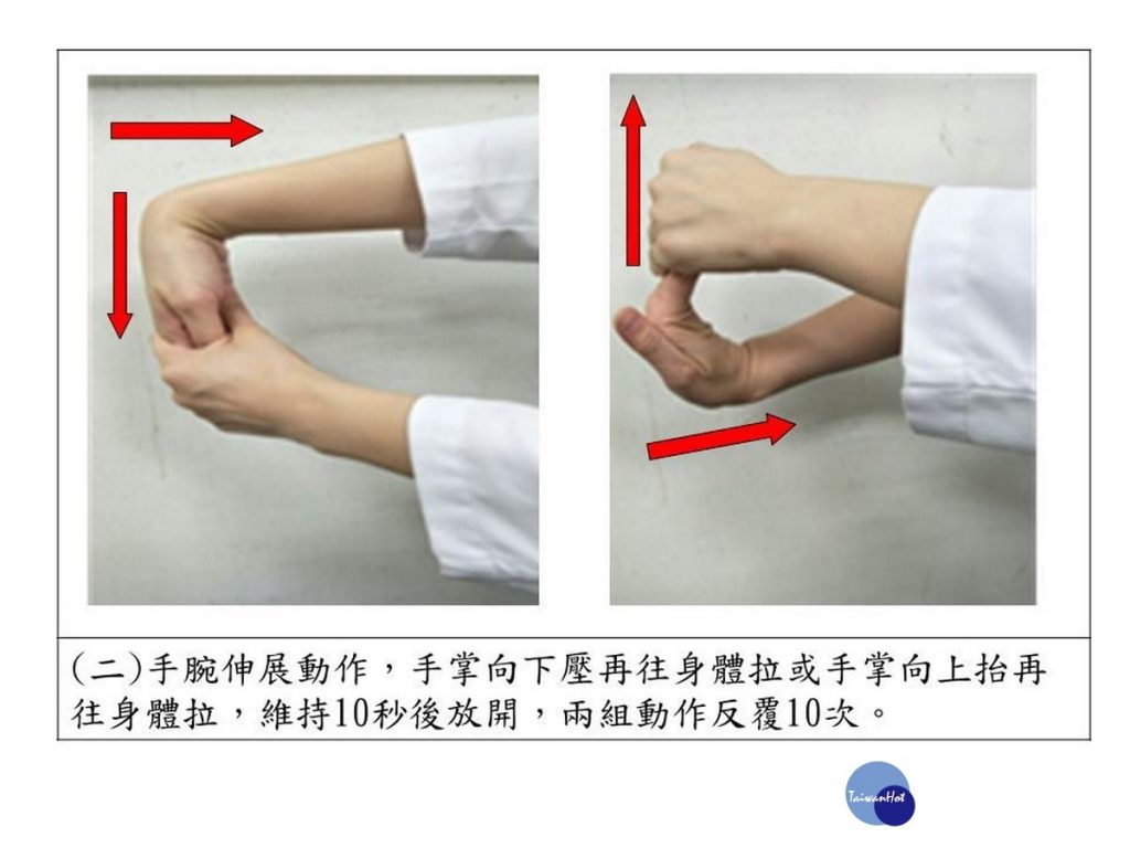 這樣做可防媽媽手。(南投醫院提供) 不少婦女朋友…