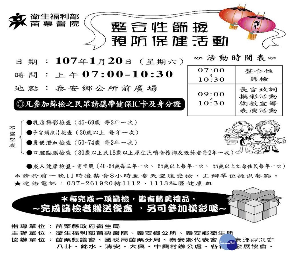守護民眾健康 苗栗泰安鄉1/20辦大型整合性篩檢…